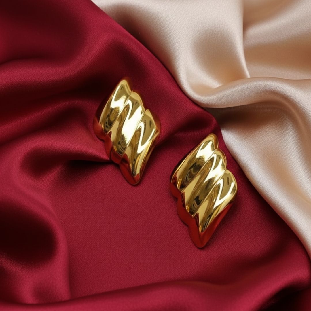 Elevate your everyday elegance with these Regal Wave Earrings, a statement blend of modern design and timeless luxury. Crafted from high-quality stainless steel, they feature a smooth 18K gold tone plating that radiates a rich, mirror-like shine. The wave-inspired silhouette adds a bold yet refined touch — perfect for both casual sophistication and evening glamour designed for lasting brilliance, these earrings come with an anti-tarnish coating, ensuring they maintain their golden glow wear after wear. Lightweight, hypoallergenic, and crafted for comfort, they’re ideal for sensitive ears.