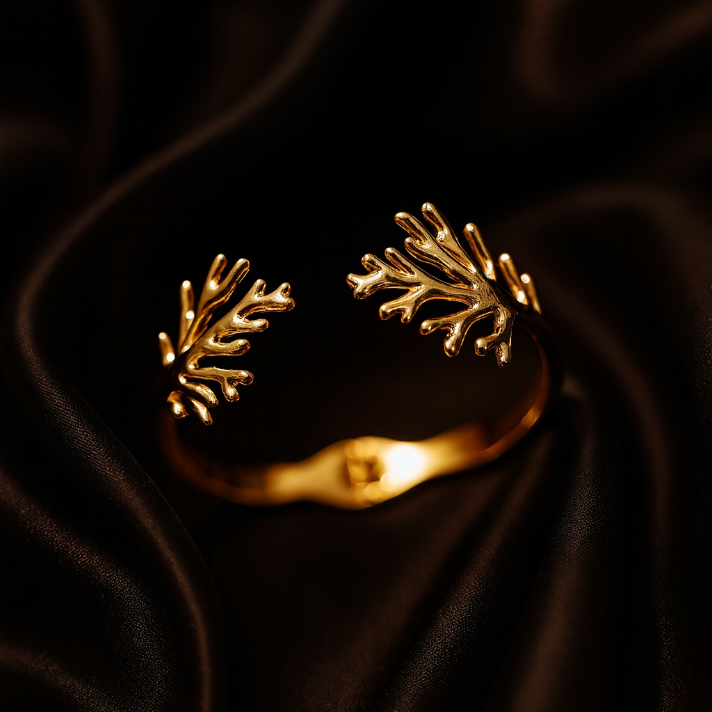 Discover everlasting elegance with our Eternal Coral Charm Bracelet, a masterpiece inspired by the beauty of ocean corals and natural blooms. Crafted in a radiant open cuff design, this bracelet showcases finely detailed golden branches that wrap gracefully around your wrist, creating a look that is both bold and refined. Plated with premium 18k gold quality, this bracelet is not only luxurious in appearance but also built to last. Its anti-tarnish and waterproof finish ensures long-lasting shine, making it perfect for everyday wear as well as special occasions. Lightweight, comfortable, and versatile, it brings together artistry, durability, and elegance in one timeless piece. Order now at Tasmaye.com
